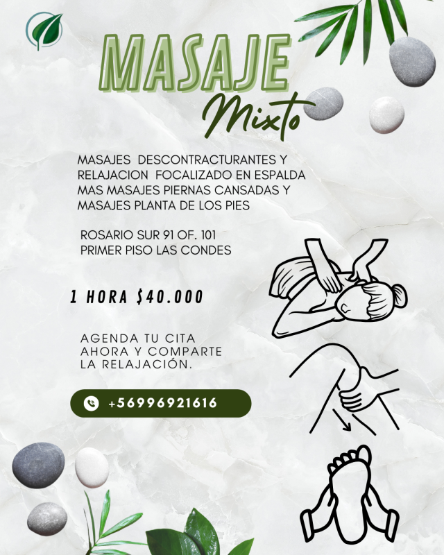 Los masajes están indicados para todo tipo de personas como método de autocuidado y prevención de lesiones, además se indican para varias condiciones como: Contracturas, afecciones musculares, alteraciones del del sistema digestivo como estreñimiento y cólicos. Para agotamiento físico o psíquico por la liberación de endorfinas y la activación del metabolismo.