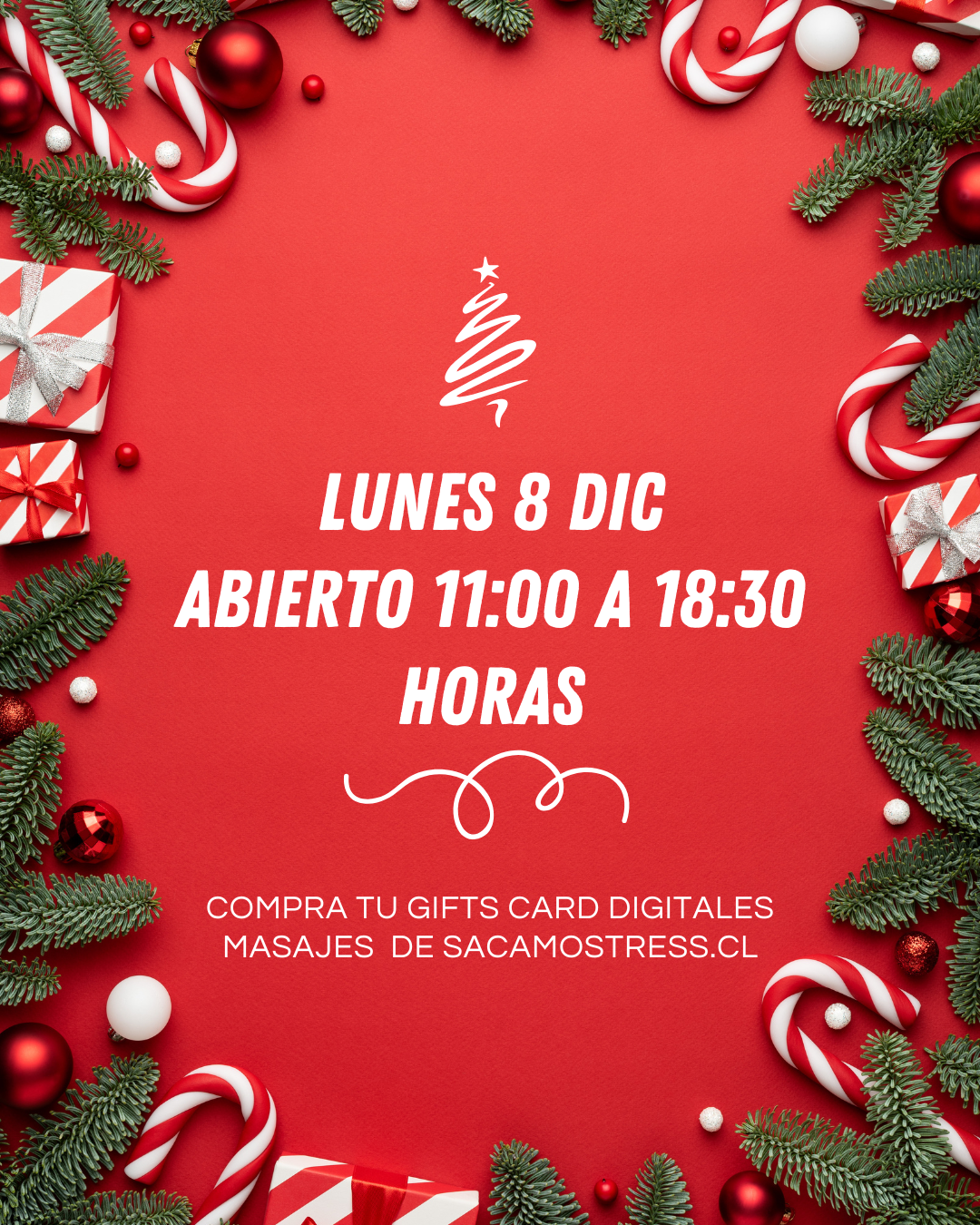 Gift Cards de Masajes para Navidad desde $40.000. Regalo perfecto de bienestar. Certificados digitales. Pago transferencia o efectivo. SacaMass Stress Las Condes. WhatsApp +56996921616.